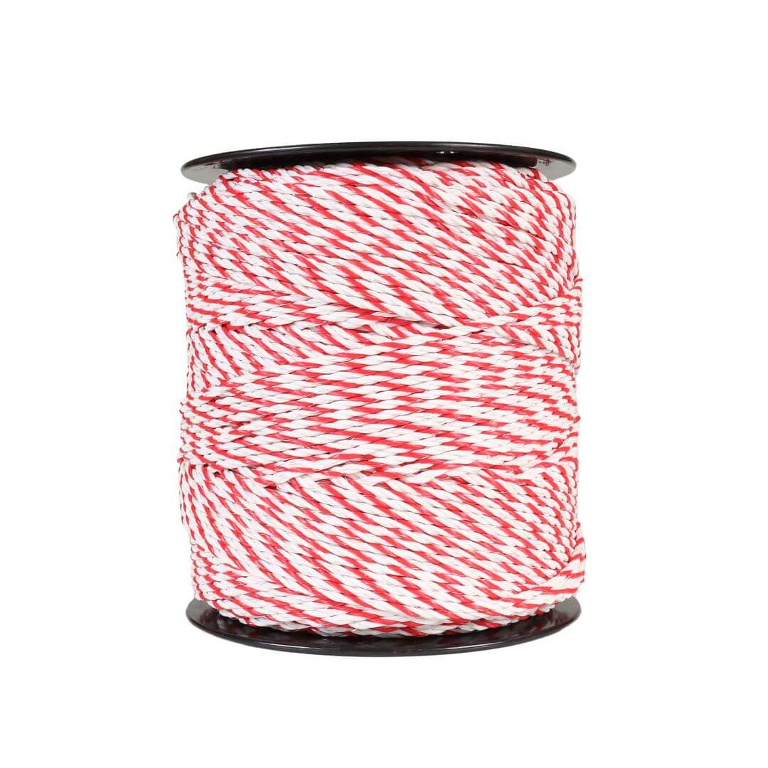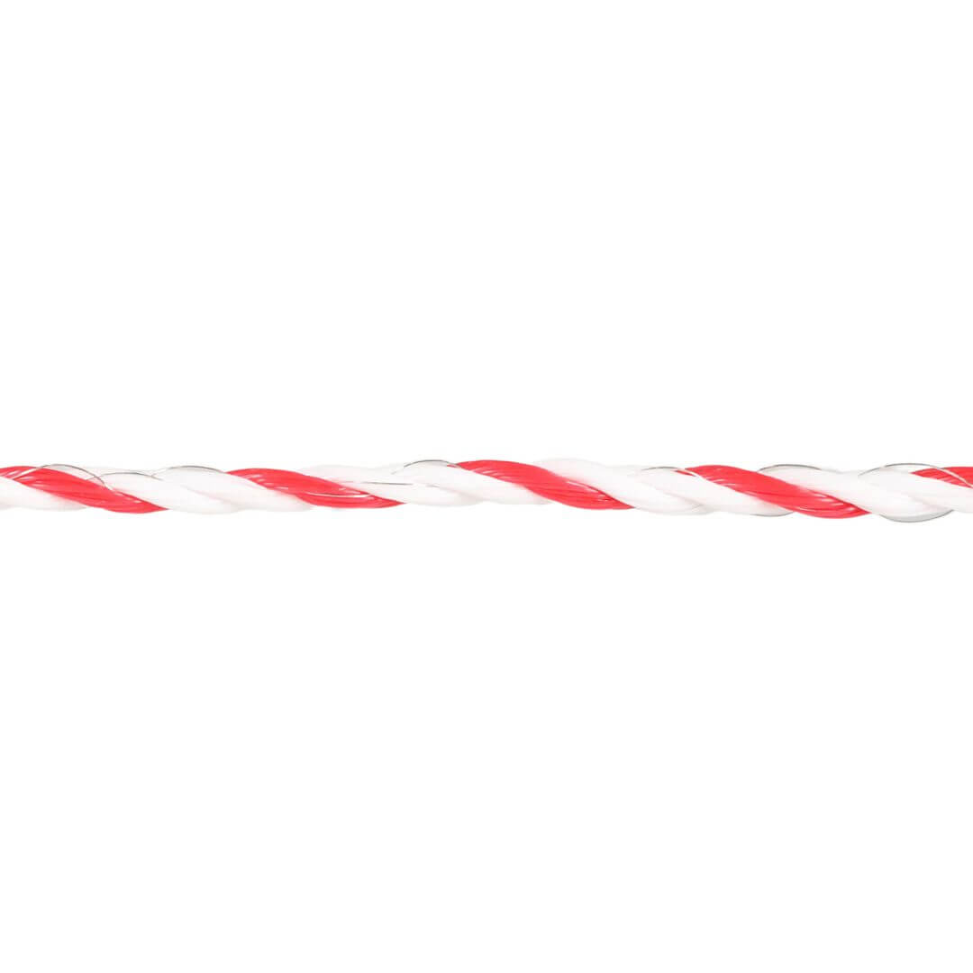 Elektrický provaz na ohradník určený pro všestranné použití u elektrických ohrad. Červeno-bílé lano 4 mm pro elektrický ohradník: šest silných nerezových vodičů pro dobrou vodivost a mimořádnou pevnost lana bílo-červená barva zajišťuje velmi dobrou viditelnost pro zvířata snadná a rychlá montáž i demontáž pro uskladnění a další použití silný kvalitní nerezový vodič 3 × 0,20 mm odpor 7,7 Ω/m průměr 4 mm délka 400 m