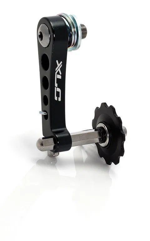 Napínač řetězu XLC Chain Tensioner CR-A03, navržený speciálně pro jednorychlostní náboje, je černý hliníkový 16-20zubý komponent vhodný pro závěsnou montáž – ideální pro jakýkoli styl jednorychlostního kola.