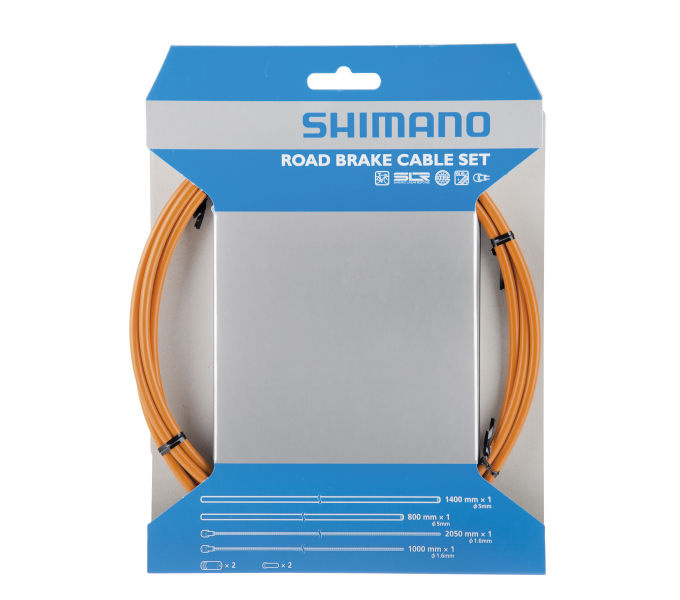 Set Shimano - brzdová silniční lanka + bowdeny - lanka: 1x1000mm, 1x2050mm - bowden: 1x800mm; 1x 1400mm - koncovka bowdenu 2x, koncovka lanka 2x barva: oranžová Original SHIMANO produkt balený v krabičce s kódem EAN. Krabička je opatřena...