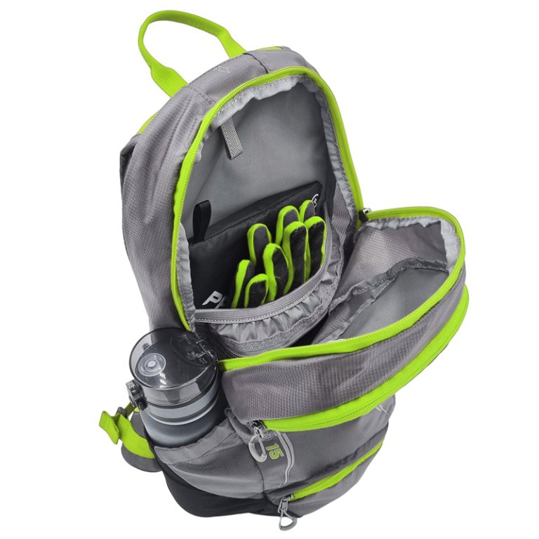 Propracovaný cyklistický batoh SPEED 15 s rozmanitým členením se stane rychle vaším nepostradatelným společníkem na všech cyklovýletech. Batoh má polstrované zádové panely, pohodlné nastavitelné polstrované ramenní popruhy s hrudním páskem a také nastavitelný bederní pás. Hlavní prostor zapínaný na zip lze využít pro umístění vodního rezervoáru nebo pro uložení věcí potřebných pro vaše cyklovýlety. Batoh má také další přední horní kapsu na zip a dvě boční jednoduché kapsy. Ve spodní kapse najdete síťku pro uložení helmy. Samozřejmostí je poutko na pověšení a reflexní prvky pro větší bezpečnost.