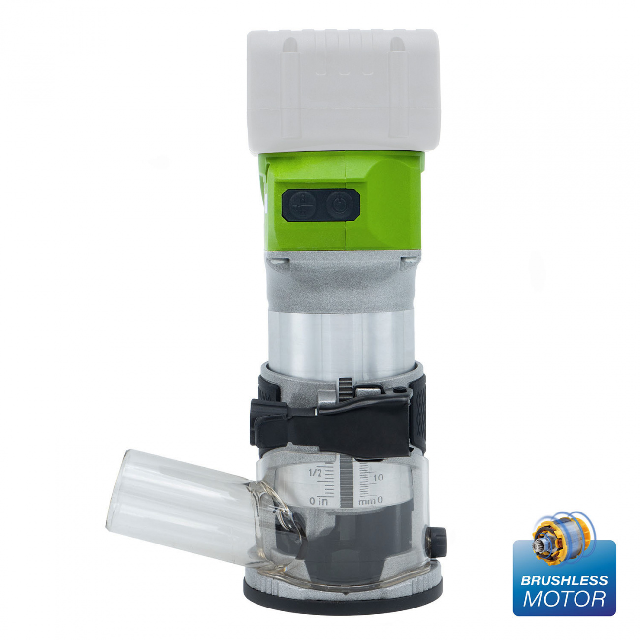 Výkonný bezuhlíkový motor: Bezkartáčový motor zajišťuje vysoký výkon pro hladké frézování, delší životnost stroje, efektivnější využití energie baterie a minimalizuje údržbu.