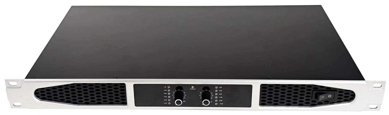 Profesionální digitální stereo zesilovač třídy D. Vysoká účinnost, vynikající stabilita a spolehlivost.Má ochranu proti zkratu, přetížení, tepelnou ochranu, limiter a proti stejnosměrnému proudu.Na zadní straně má přepínač režimu stereo/paralel/bridge a přepínač X-OVER...