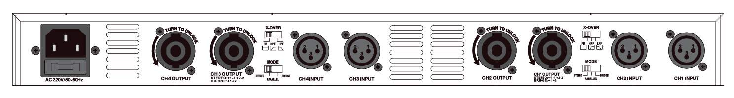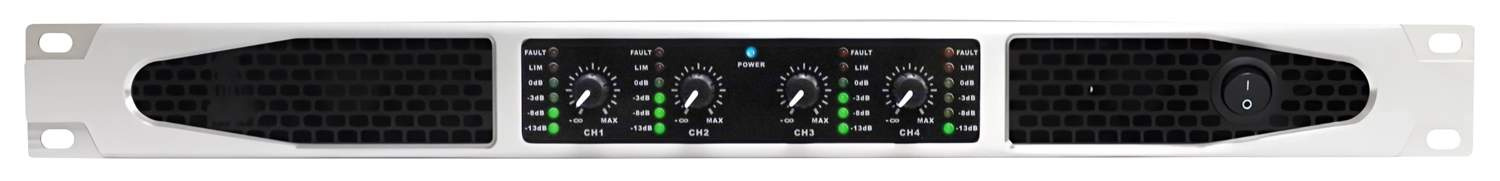 Profesionální 4-kanálový digitální stereo zesilovač třídy D. Vysoká účinnost, vynikající stabilita a spolehlivost.Má ochranu proti zkratu, přetížení, tepelnou ochranu, limiter a proti stejnosměrnému proudu.Na zadní straně má pro každou dvojici kanálů přepínač režimu...