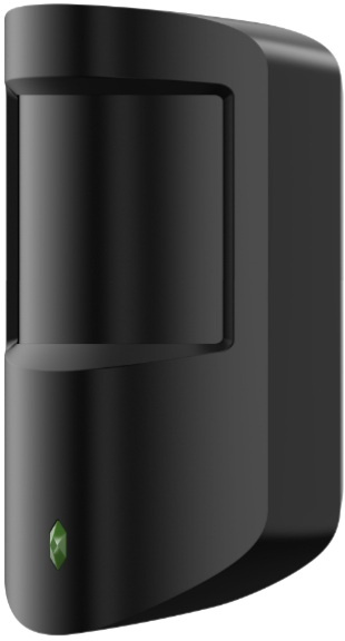 Černý bezdrátový infrapasivní detektor pohybu PIR s dosahem 12 m/90°, PET imunita do 18 kg, citlivost 3 úrovně, digitální teplotní kompenzace, měření teploty, filtr bílého světla: 2000 lx, instalační výška: 2,2 m, LED indikátor, tamper, frekvence 868 MHz, zabezpečení...