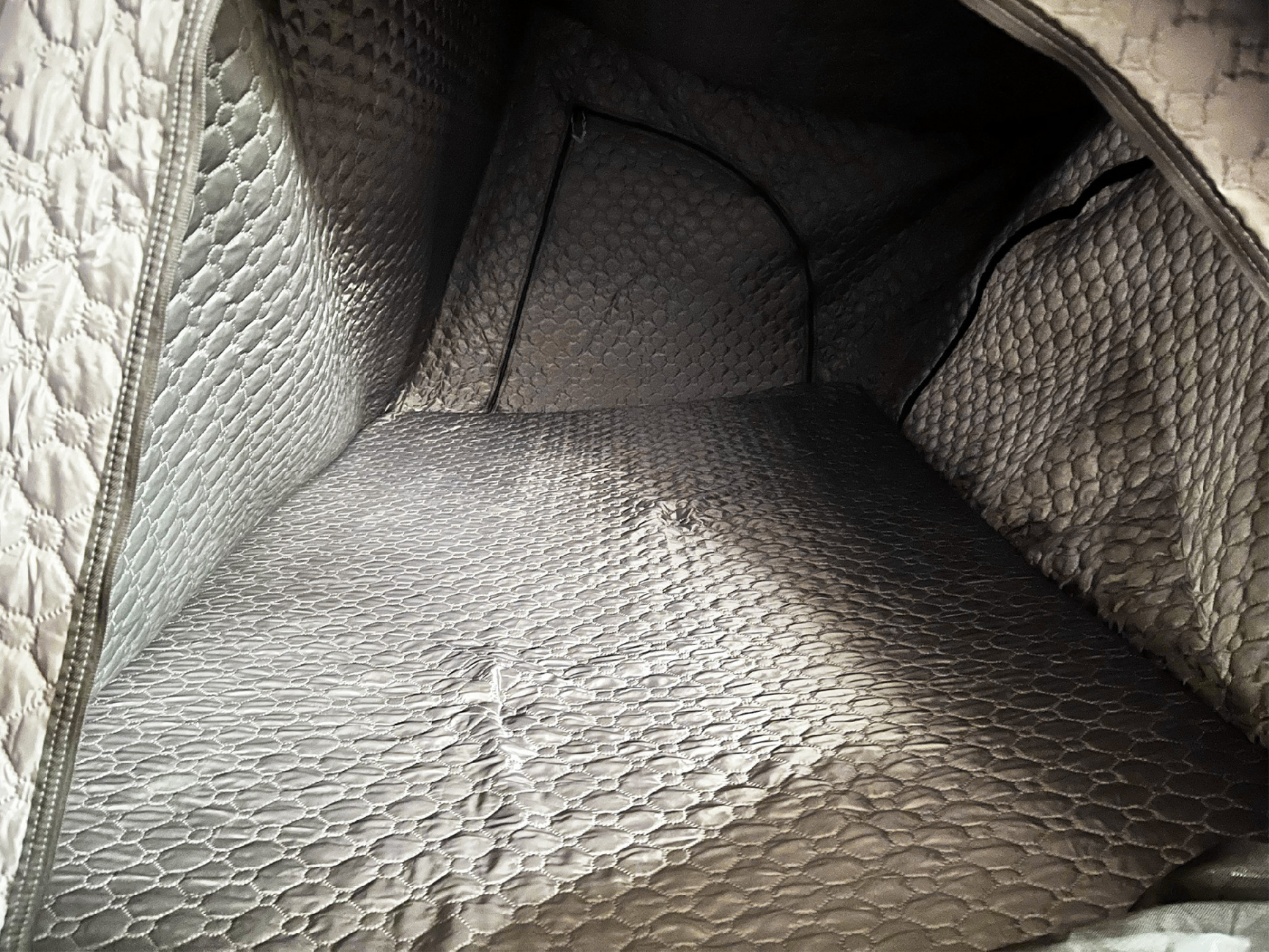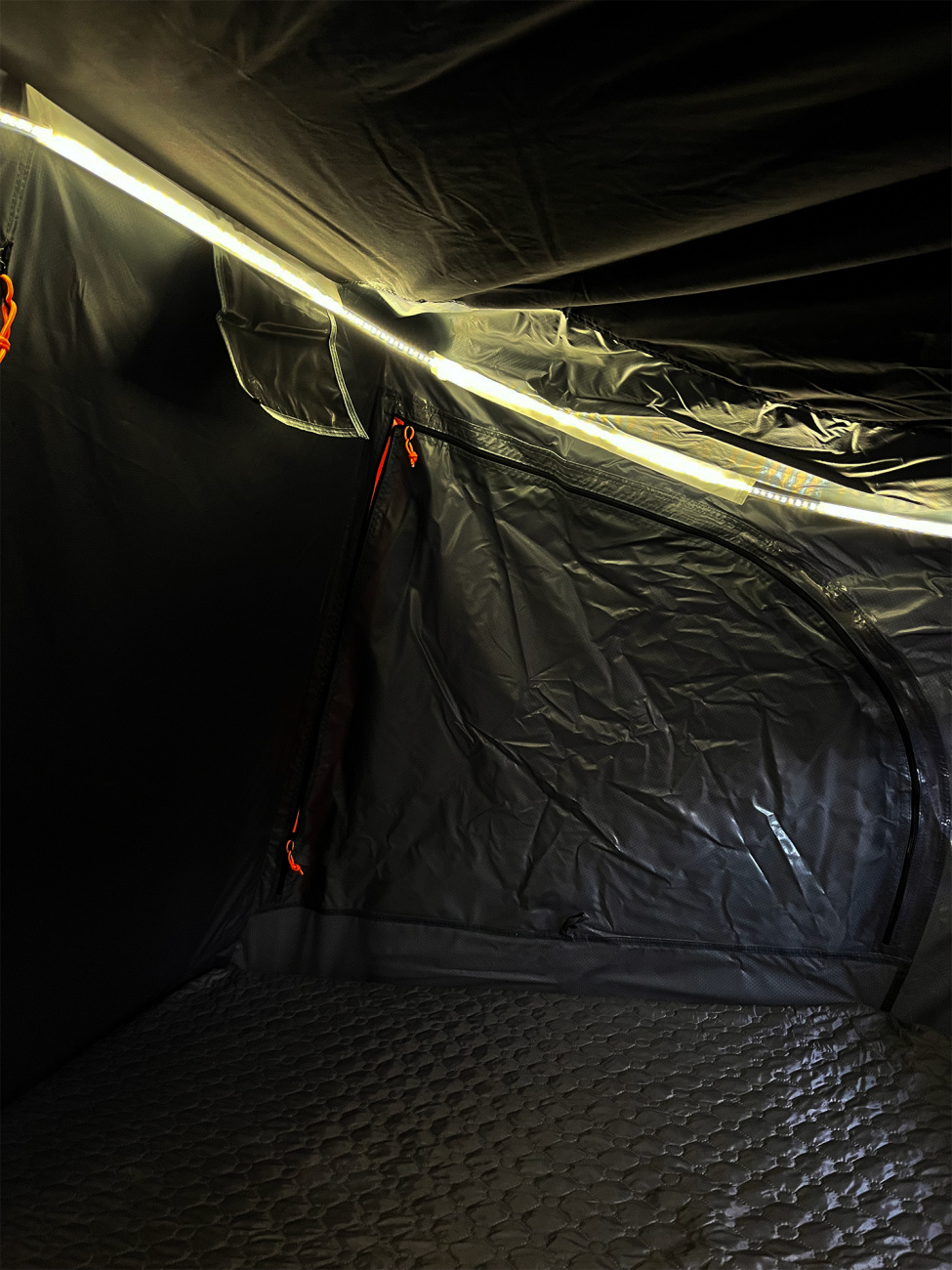 Uvnitř se nachází komfortní pěnová matrace o rozměrech 195 x 117 x 7,5cm se snímatelným potahem, kterou lze snadno vyjmout a vyčistit. Samozřejmostí je antikondenzační podložka a vnitřní izolační vrstva, které pomáhají udržet suché a příjemné prostředí i při chladnějších nocích.