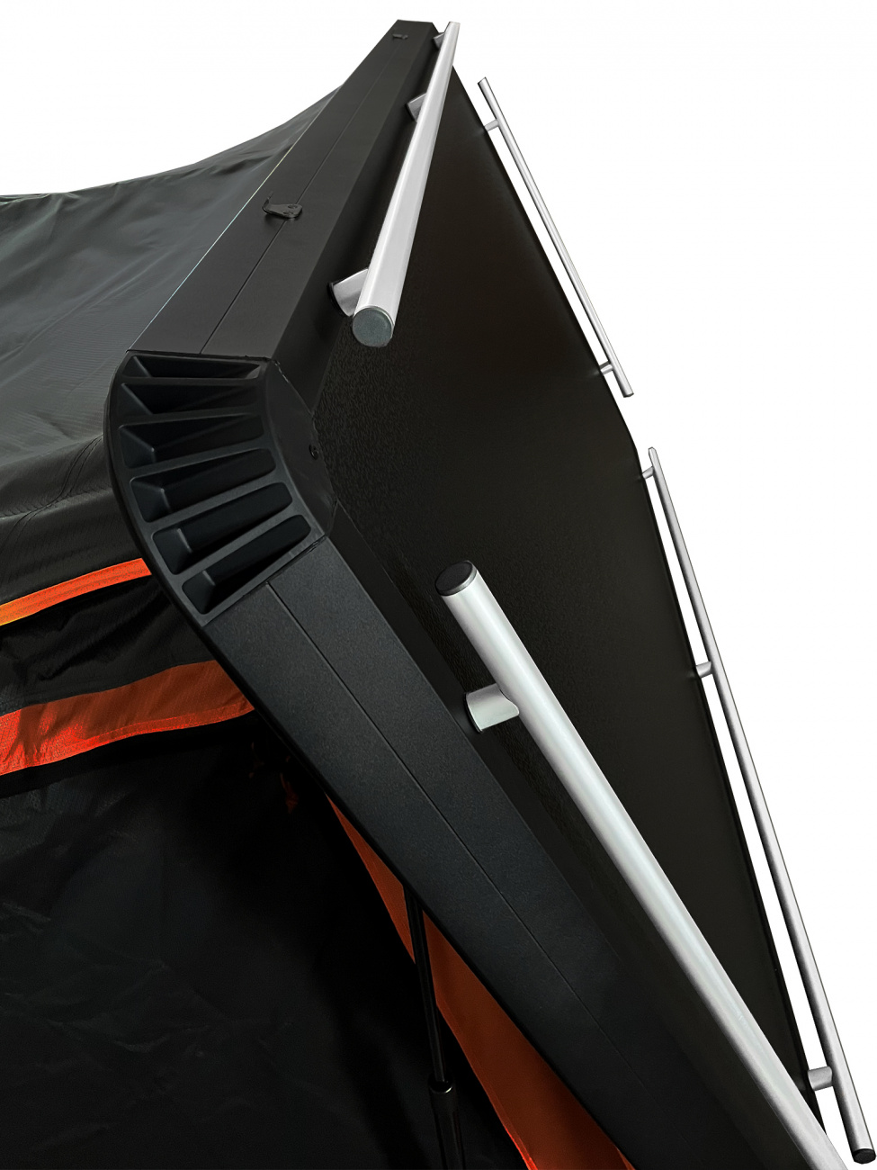 Zároveň toto řešení usnadňuje přívod kabelů z interiéru vozidla do stanu – například pokud napájíte připojovací panel ze svého vozidla přes zásuvku Anderson. Umístění otvoru na kabely je přizpůsobeno zvolenému směru, což zaručuje čisté, bezpečné a funkční propojení.