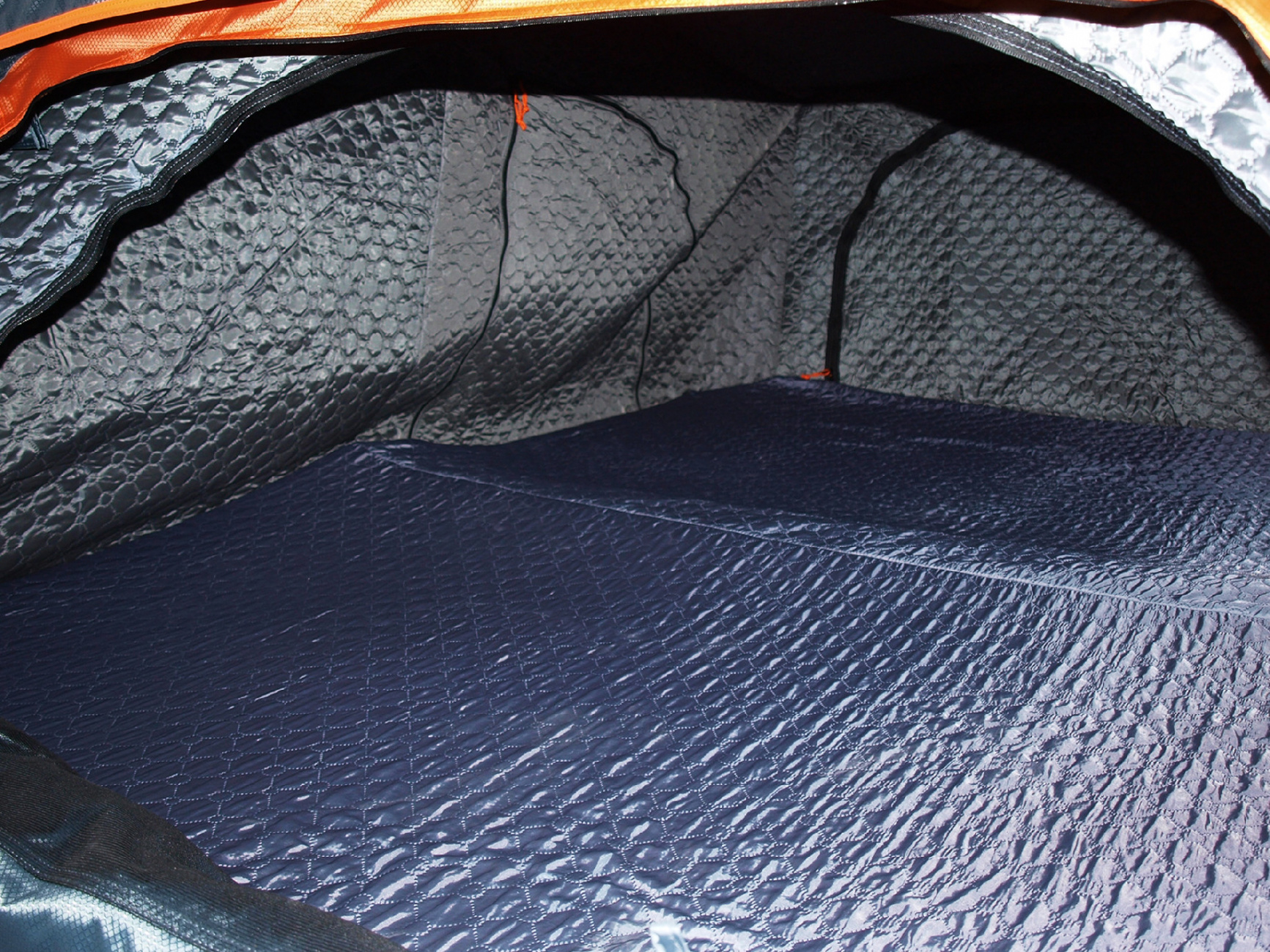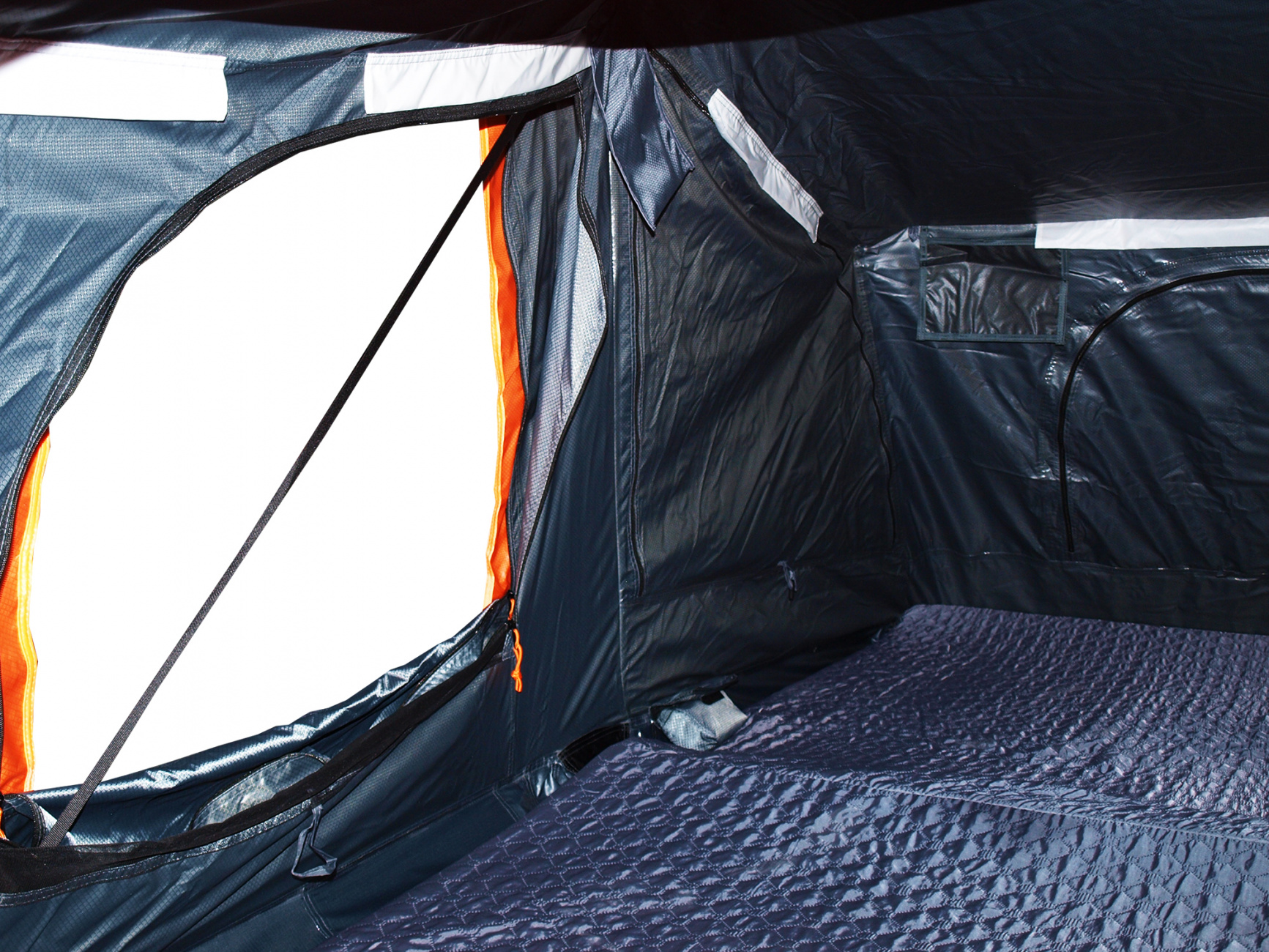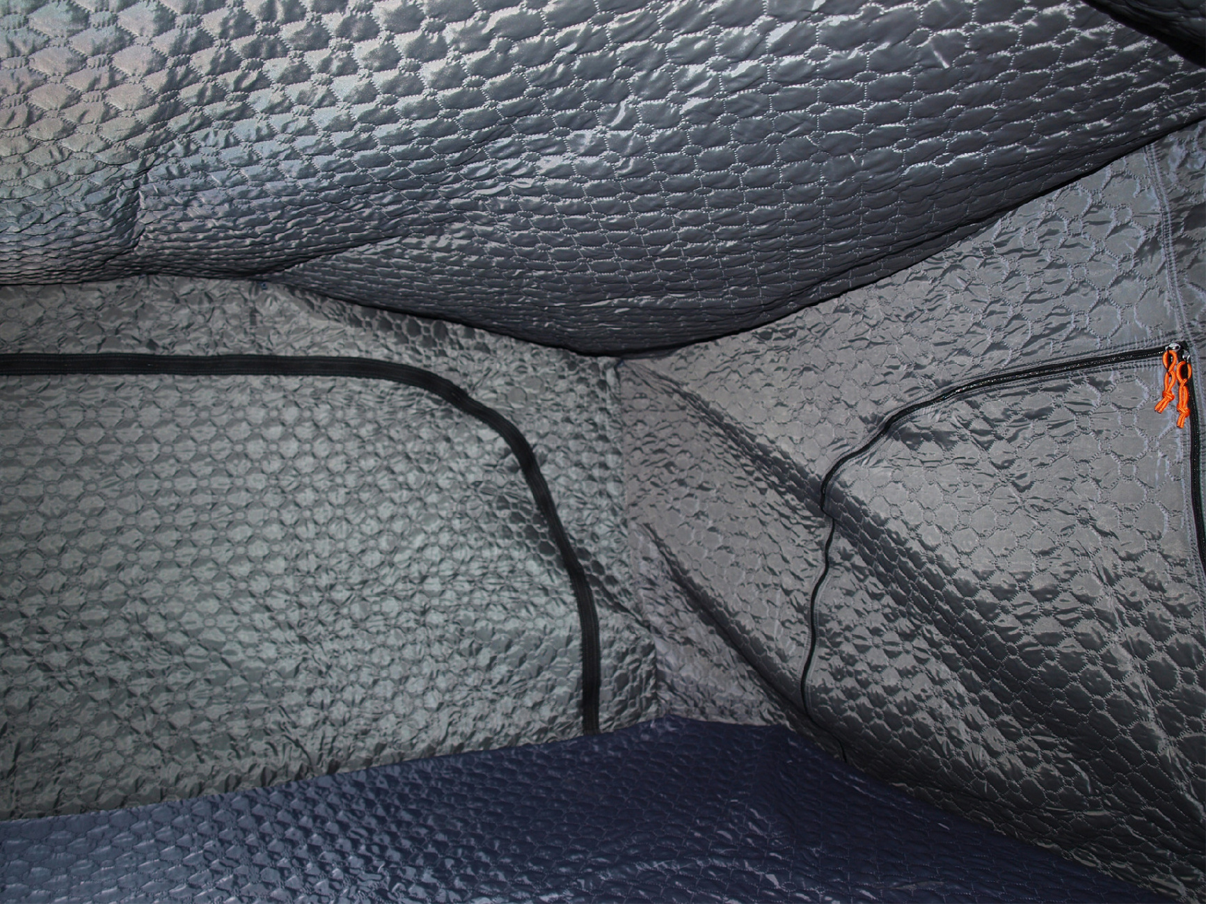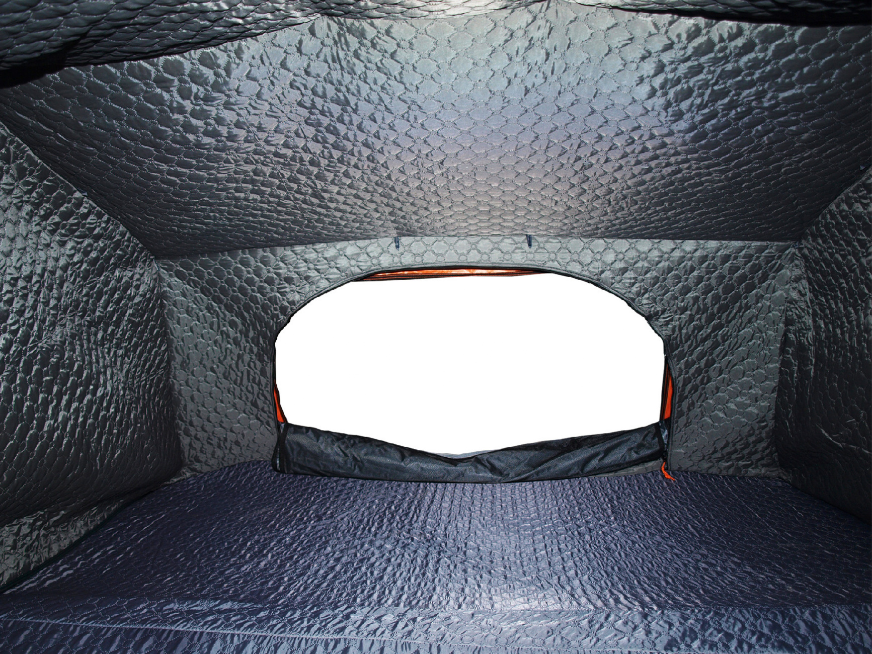 Uvnitř se nachází komfortní pěnová matrace o rozměrech 198 x 248 x 3cm se snímatelným potahem, kterou lze snadno vyjmout a vyčistit. Samozřejmostí je antikondenzační podložka a vnitřní izolační vrstva, které pomáhají udržet suché a příjemné prostředí i při chladnějších nocích.