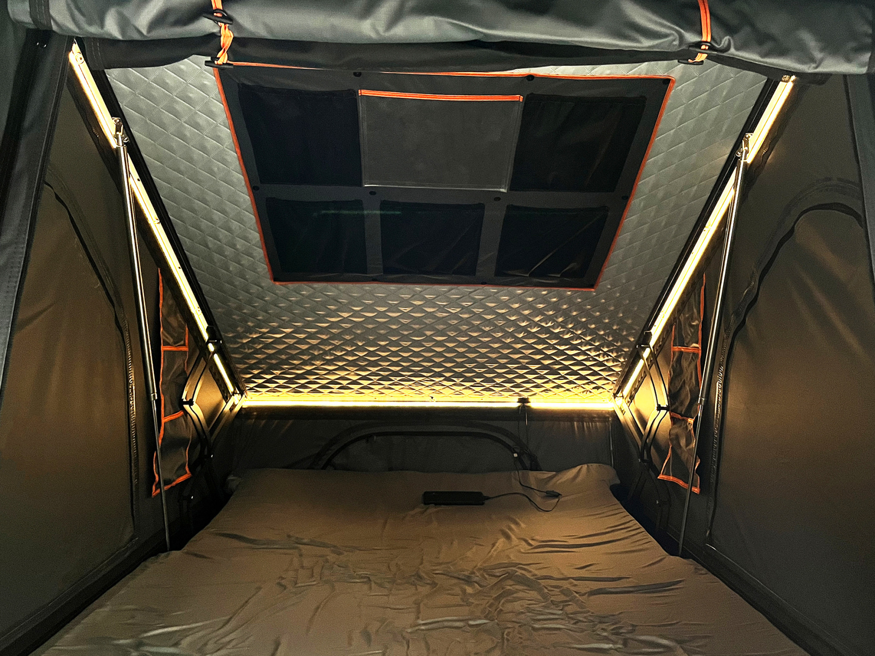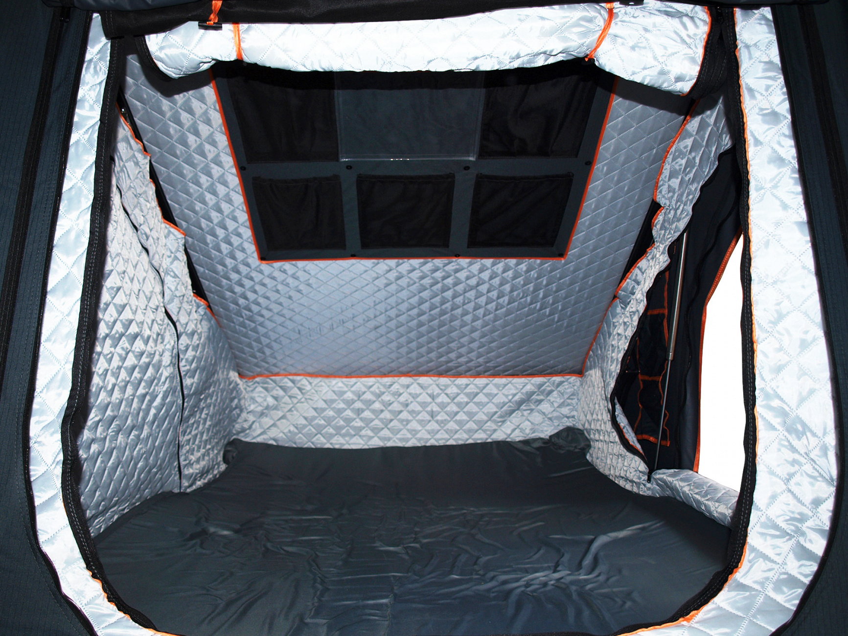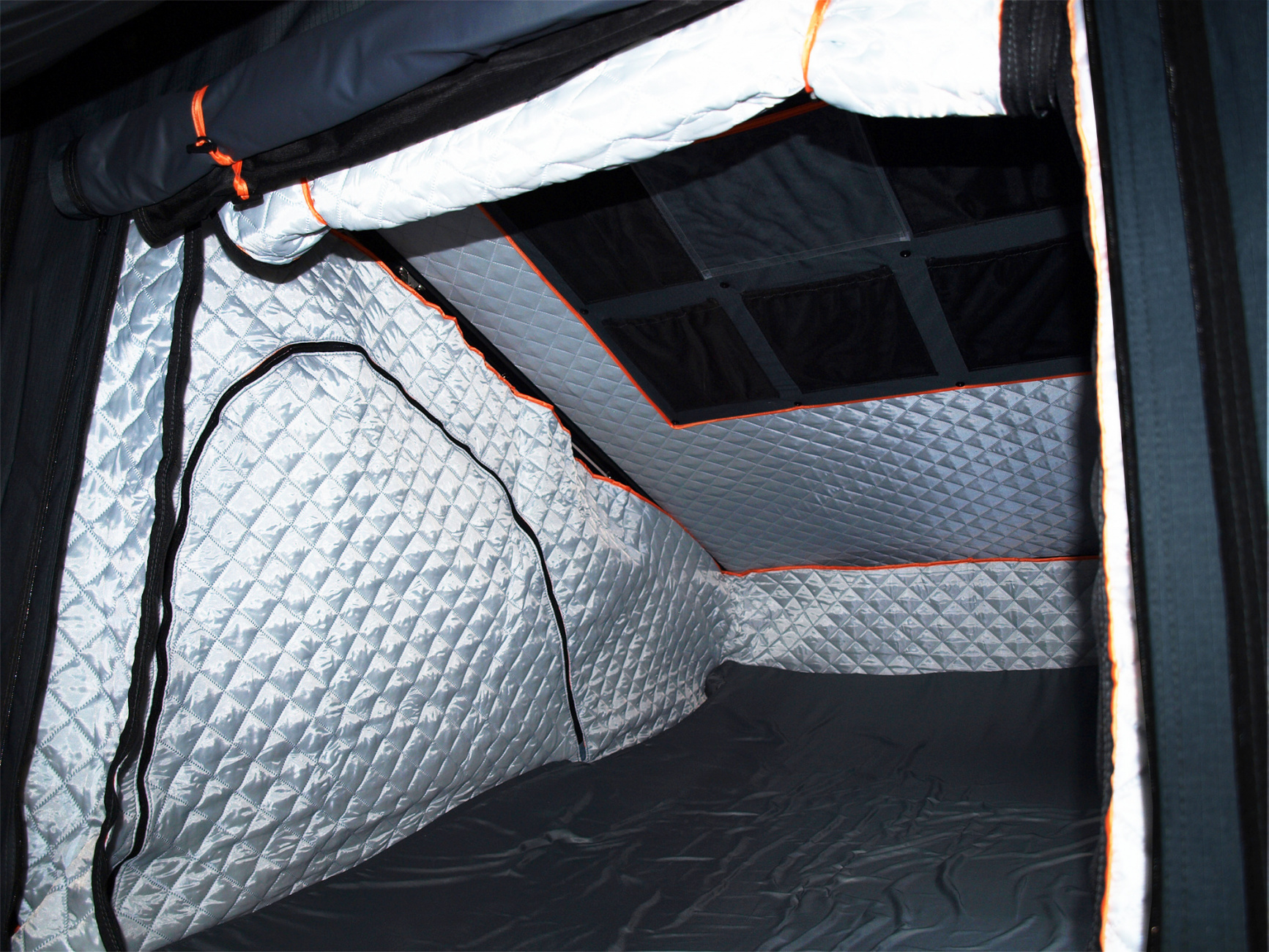 Uvnitř se nachází komfortní pěnová matrace o rozměrech 200 × 135 × 5 cm se snímatelným potahem, kterou lze snadno vyjmout a vyčistit. Samozřejmostí je antikondenzační podložka a vnitřní izolační vrstva, které pomáhají udržet suché a příjemné prostředí i při chladnějších nocích.