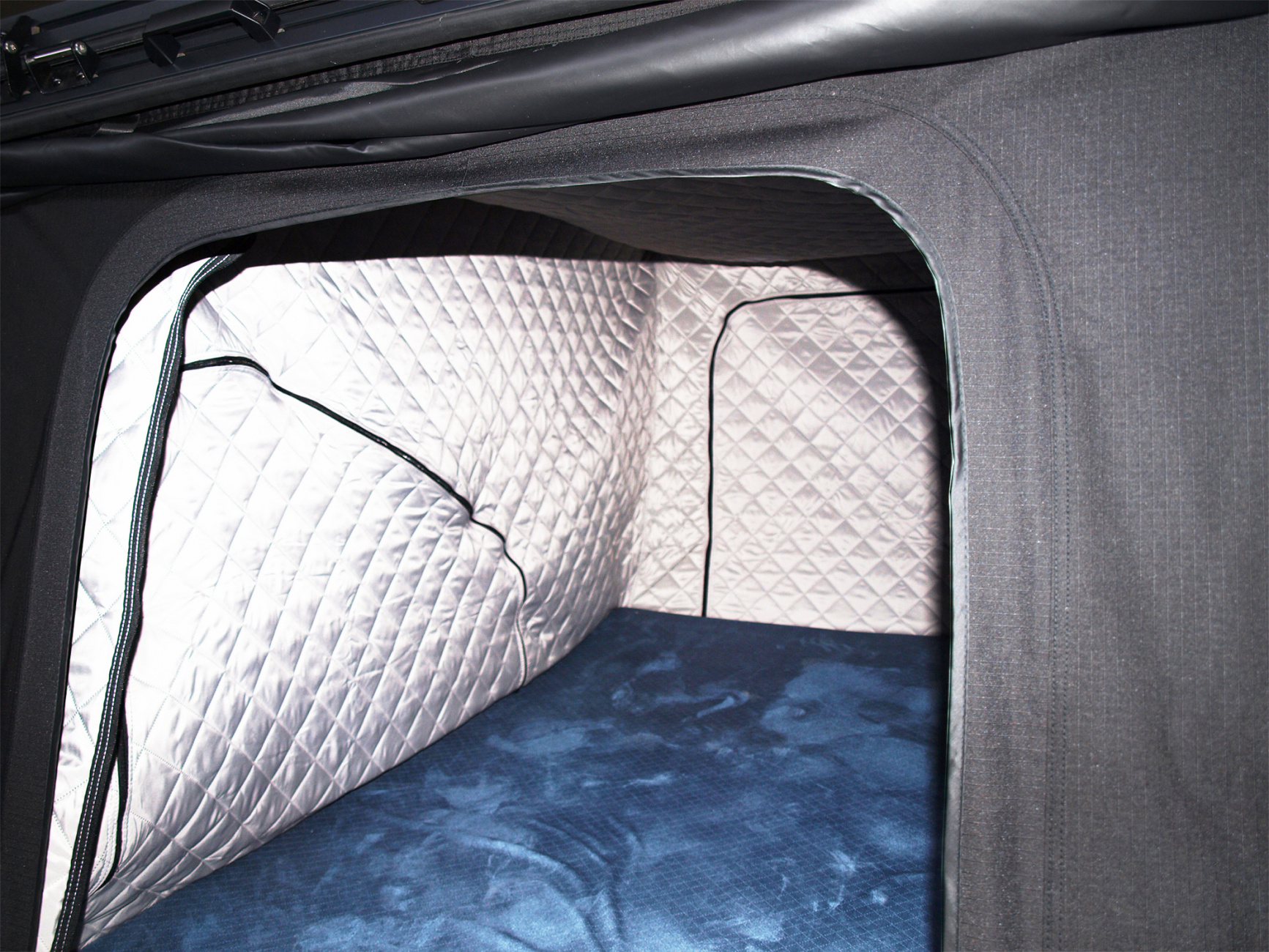 Uvnitř se nachází komfortní pěnová matrace o rozměrech 198 x 132 x 5 cm se snímatelným potahem, kterou lze snadno vyjmout a vyčistit. Samozřejmostí je antikondenzační podložka a vnitřní izolační vrstva, které pomáhají udržet suché a příjemné prostředí i při chladnějších nocích.