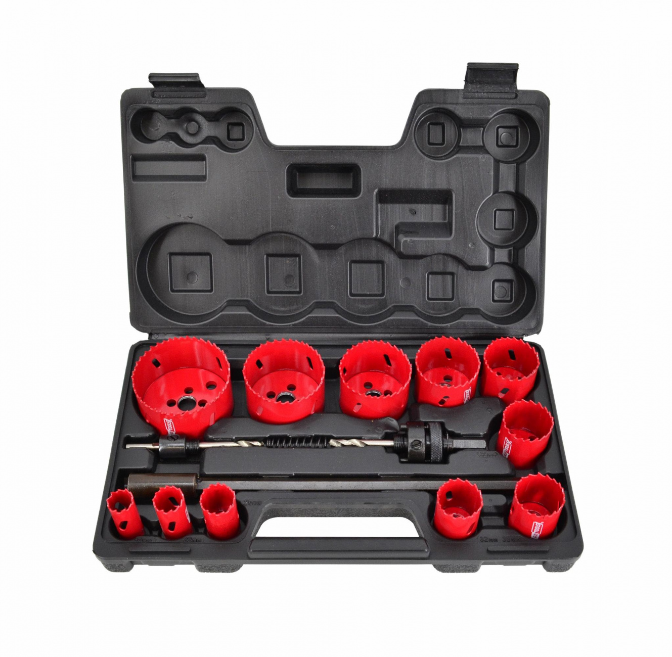 Praktická sada vrtacích korunek s unašeči s kulatou stopkou a Hex zakončením.Korunky průměrů 19,22,25,32,35,38,44,51,57,64,76 mm jsou zhotovené z HSS M3 oceli.hloubka řezu40 (mm)počet dílů15materiálHSS M3 ...