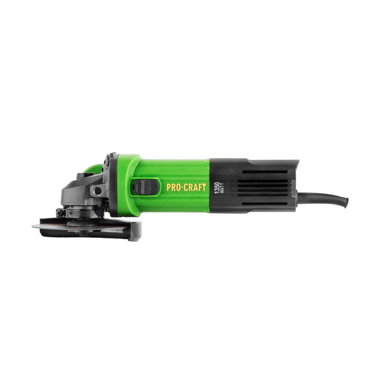 Součástí balení: uhlíkové kartáče, montážní klíč, ochranný kryt, přídavná rukojeť. Plynulý rozběh, Regulace a stabilizace otáček. Příkon: 1350W Průměr kotouče: 125mm Otáčky: 4500-12000/min Vřeteno: M14 Hmotnost: 2,0 kgBruska úhlová Procraft...