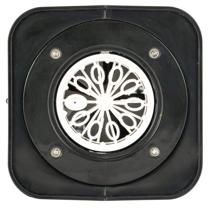 Hledáte jedinečnou zábavu jako žádná jiná? Tento kompaktní bublinkový stroj je pro vás ideální! Budete ohromeni jeho působivou produkcí mýdlových bublin vířících vzduchem, zvýrazněných 4 LED diodami, které zvýrazňují barvy bublin.Projekční výška až 2,50 m v interiéru. Bublifuk je napájen bateriemi (4ks 1,5V AA). Balení obsahuje dálkový ovladač pro výběr programů osvětlení. Bublifuk obsahuje DIP přepínače pro nastavení a možnost nezávislého ovládání více bublifuků jedním ovladačem (například postupné zapínání). Nádržka na kapalinu má kapacitu 100ml.