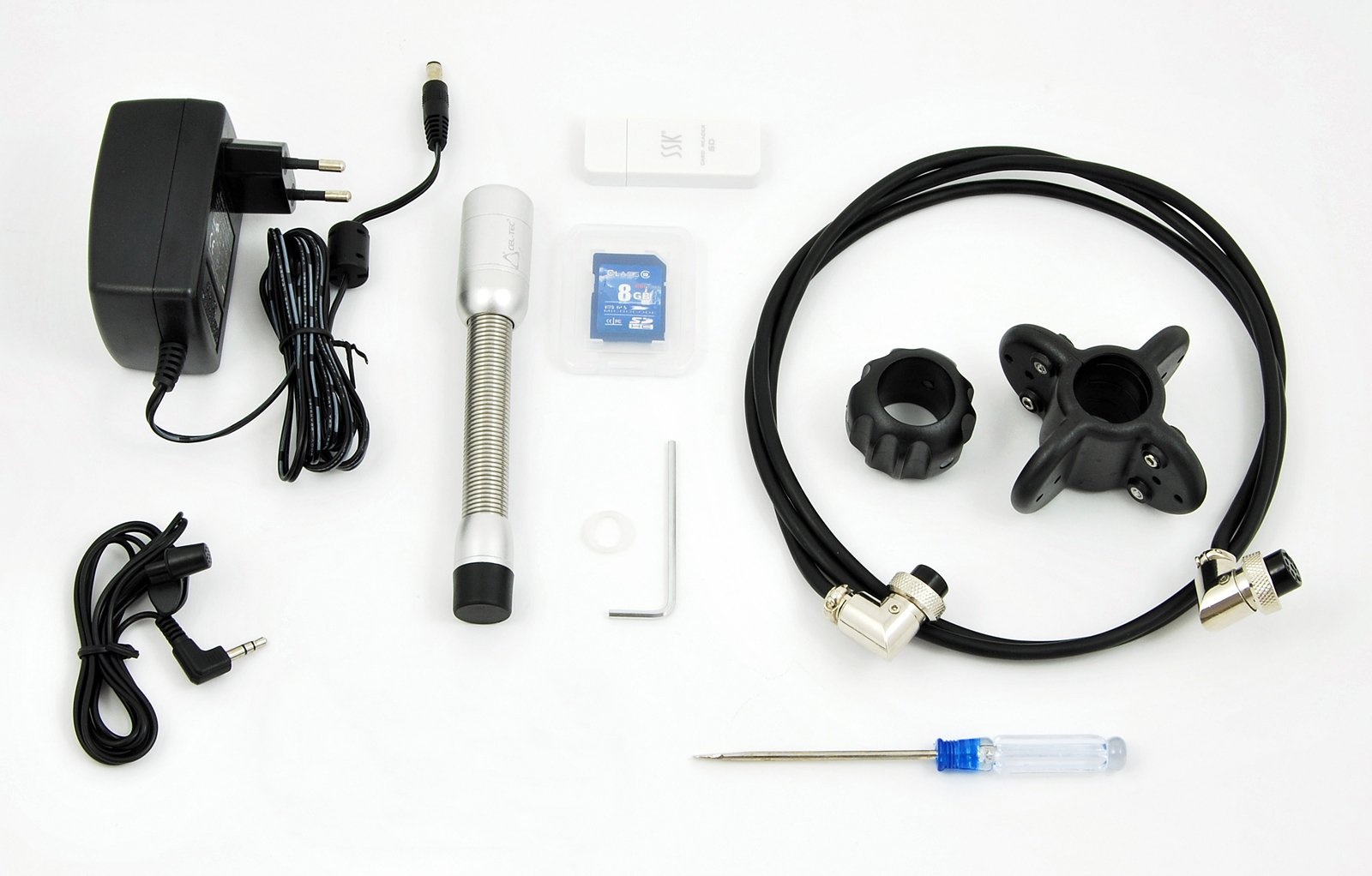 O perfektní záznam obrazu se stará kamera s kvalitní safírovou čočkou o rozlišení 720 x 576. Tělo kamery je vyrobeno z hliníkové slitiny, hlavice je pak vybavena 12 bílými LED, jejichž intenzitu svitu lze jednoduše a plynule regulovat. Skvělou viditelnost v jakémkoliv prostoru dále podporuje široký úhel záběru 105°. V balení jsou k dispozici dva vystředováky (40 a 80 mm) a další 4 velikosti až do průměru 190 mm je možné dokoupit.