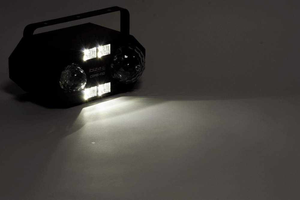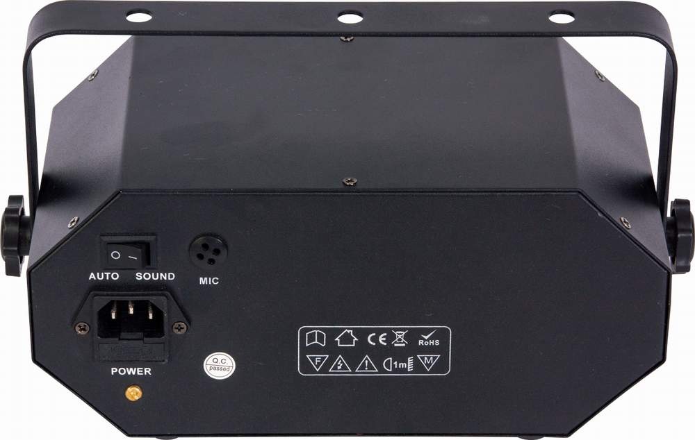 Multi světelný efekt 4v1. Obsahuje: astro efekt/vodní vlna/UV světlo/stroboskop. Toto zařízení nahradí 4 světelné efekty které zaplaví místo světlem. Světla se navzájem dokonale doplňují a mohou tančit do rytmu hudby nebo fungovat automaticky. K světlu je dodáváno IR dálkové ovládání.