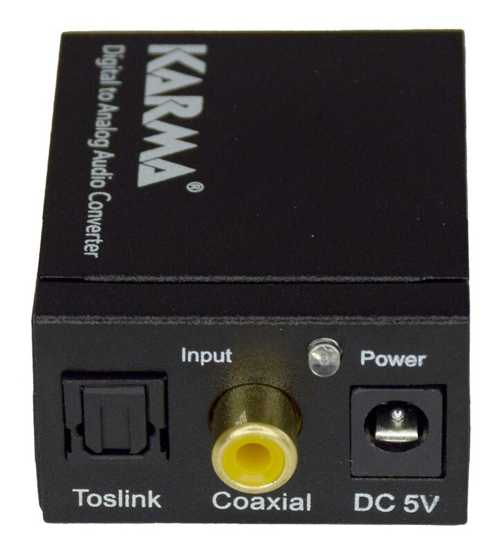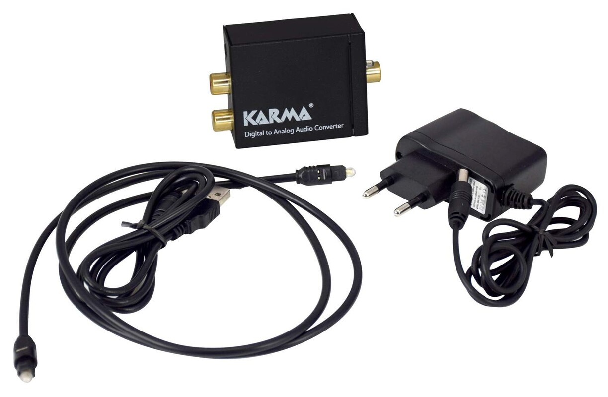 Konvertor digitálního signálu na analogový audio signál. Umožňuje připojení TV, CD/DVD přehrávače nebo set-top boxu s digitálním výstupem k analogovému zesilovači se stereo vstupem nebo na sluchátka. Převádí digitální audio signály z Toslink (optický) nebo RCA (koaxiální) na analogový stereo 2x RCA nebo na jack3,5mm. Podporuje PCM zvukový signál. Obsahuje napájecí zdroj a 1m optický kabel.