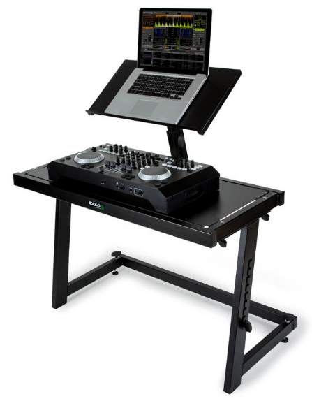 Velmi kvalitní, profesionální a stabilní DJ stojan pro uložení aparatury s nastavitelným držákem na notebook. Vhodný pro mix pult, ovladač, přehrávače, notebook atd ... Díky lehké montáži a demontáži je ideální na přepravu. Je vyroben ze silné oceli s nastavitelnou výškou...