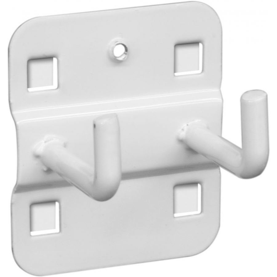 Dvojitý hák s pravoúhlým zakončením, kompatibilní s dílenskými závěsnými systémy, které využívají čtvercové děrování 10 mm2 při vertikální/horizontální vzdálenosti středů otvorů 38 mm. Délka závěsných ploch: 40/40 mm. Typ balení: volné (kusové).