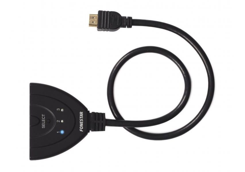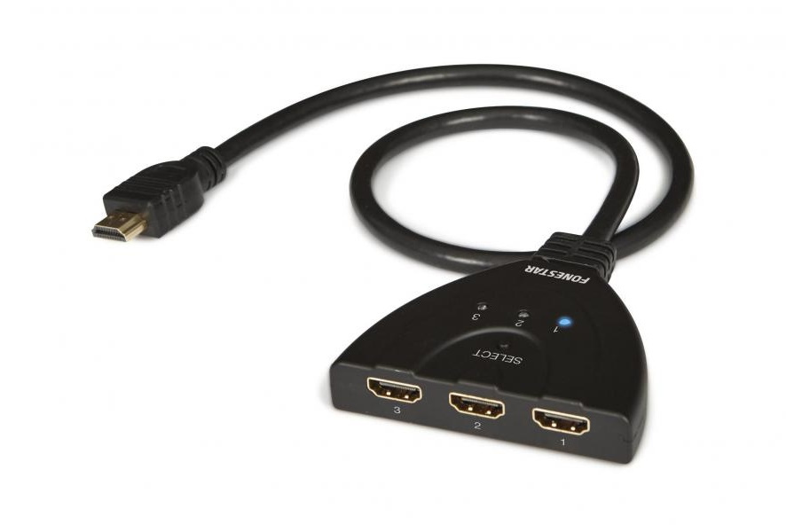 Fonestar FO-513 je jednoduché řešení pro případ, kdy máte například v TV málo HDMI vstupů. Pomocí slučovače si z jednoho HDMI vstupu uděláte tři. Můžete tak připojit více zařízení.