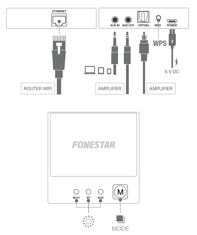 Vylepšete si svůj zesilovač o nejnovější online streamovací služby. Přehrávejte hudbu ze svého smartphonu, tabletu, Windows nebo Macu přes Wi-Fi (2,4 GHz) nebo síťový kabel RJ-45. FONCAST je vybaven aplikací pro ovládání z chytrých telefonů a tabletů (iOS a Android), která umožňuje připojení k online hudebním službám a internetovému rádiu, odesílání stejného hudebního programu do několika FONCASTů současně (multiroom) nebo přehrávání různých hudebních programů v každém z nich. Umožňuje mimo jiné ovládat hlasitost každého FONCASTu a přizpůsobit jeho název. Obsahuje také vstup pro připojení dalších zdrojů zvuku a výstup analogový i digitální optický pro připojení k zesílovači. Poskytuje vysokou spolehlivost a kvalitu zvuku.