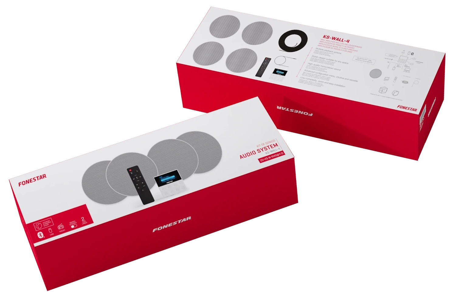 Fonestar KS-WALL je praktický a promyšlený set pro decentní ozvučení menších místností jako jsou čekárny, chodby, toalety, kuchyňky atd. Balení obsahuje kompaktní stereo zesilovač se čtyřmi 6" stropními reproduktory, reproduktorový kabel 4 x 5 m, drátovou anténu FM rádia, dálkový ovladač a baterie - vše potřebné pro bezproblémovou instalaci a provoz.