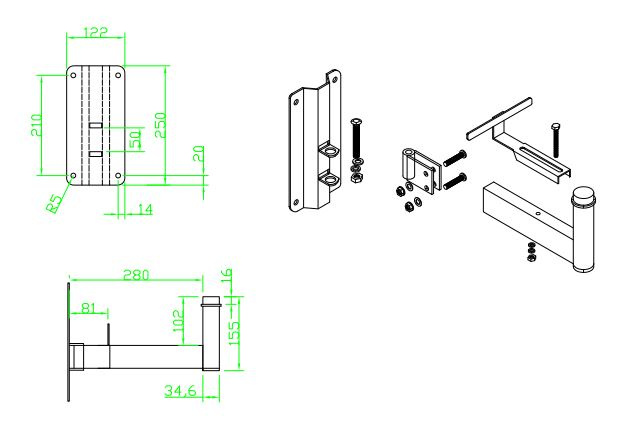 Profesionální, nastavitelný nástěnný držák pro reproduktory s otvorem pro trubku 35 mm Robustní ocelová konstrukce zajišťuje stabilní a bezpečné ukotvení všech typů reprosoustav vybavených 35 mm otvorem (hnízdo) o hmotnosti až 30 kg. Umožňuje horizontální nastavení 180°...