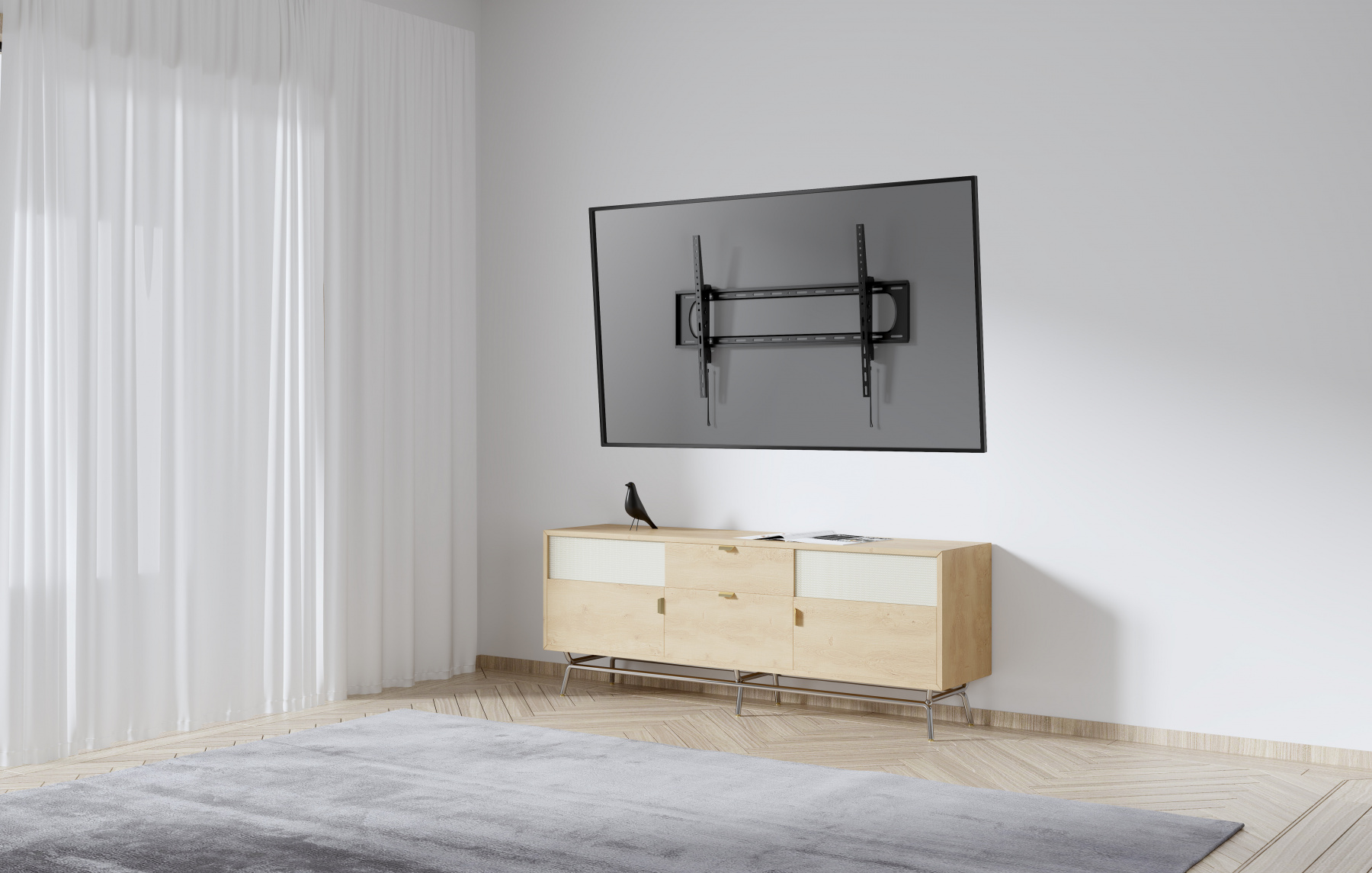 Držák TILT-096PR je ideální pro ty, kteří hledají nástěnný sklopný držák, který kombinuje bezpečnost, design a snadnou instalaci. Jeho pevná konstrukce podporuje největší televizory na trhu, zatímco jeho různé možnosti nastavení umožňují přizpůsobit se jakémukoli prostředí a potřebám sledování. Díky vysoce kvalitním materiálům a prostorově úspornému designu je TILT-096PR spolehlivým a odolným řešením pro optimalizovaný zážitek ze sledování v jakékoli domácnosti nebo komerčním prostoru.