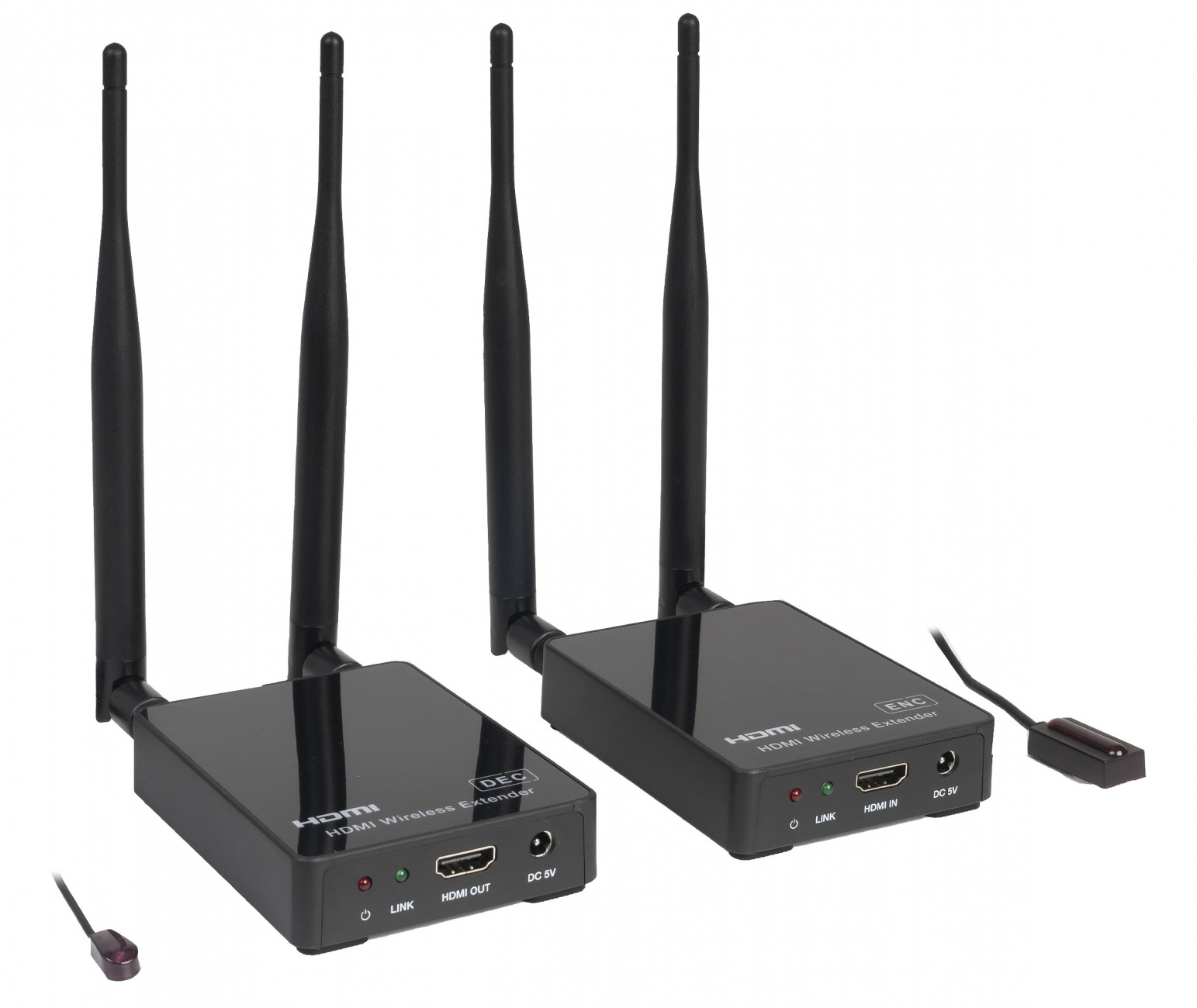 Součástí je také IR dálkový přenos signálu. To znamená, že pokud máte zdroj signálu (například set-top box, Blu-ray přehrávač, DVR nebo multimediální centrum) umístěný u vysílače, můžete jej pohodlně ovládat z místa, kde je obraz přijímán — například od televize nebo projektoru v jiné místnosti.