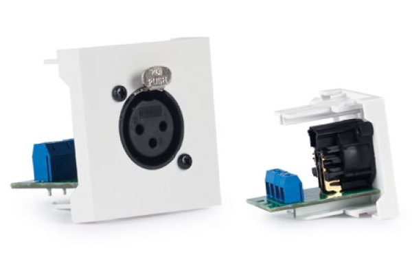 Přípojné místo s 1 konektorem XLR (samice) z řady propojovacích panelů pro audiovizuální instalace, učebny, konferenční místnosti atd.