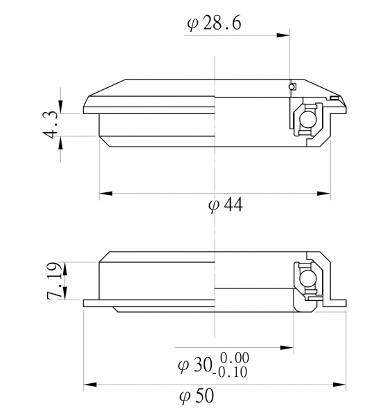 Rozměr: 28,6/44,0/30,0mm /vrchní miska - střed - spodní miska