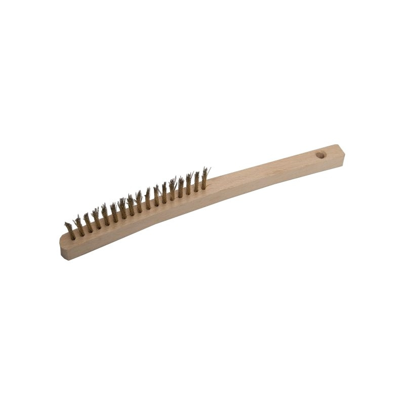 Dřevěné držadlo, pomosazený ocelový vlnitý drát.