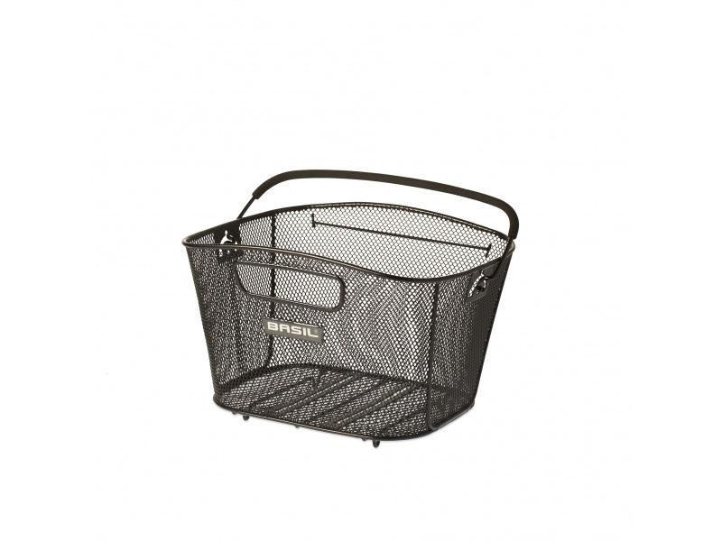 Drátěný koš na nosič Délka: 390 mm Šířka: 240 mm Výška: 210 mm Materiál: ocelová síťovina s výztužemi Koš obsahuje tzv.Clever systém - gumičku pro šikovné připevnění nákupmí tašky Upnutí na nosič pomocí klipu na košíku Barva: černá Balení:...