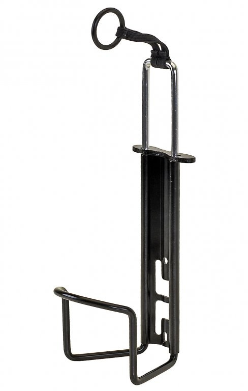 Košík na lahev s nastavitelnou výškou Vhodný i pro PET lahve do 1,5 l Pojistný kroužek pro udržení lahve Materiál: Al Hmotnost: 31 g Průměr: 88 mm Barva: černá Balení: servisní v sáčku ...