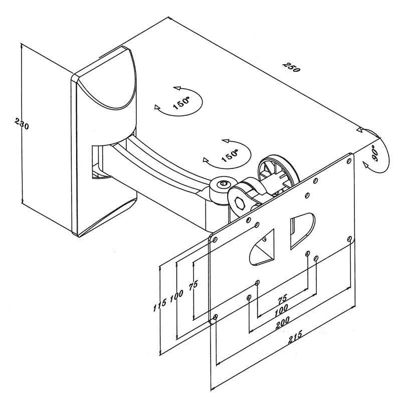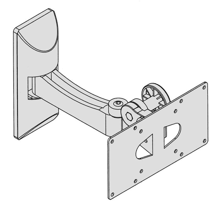 Variabilní stěnový držák pro LCD. Nosnost 15kg. Délka paže 250mm. Provedení stříbrné. VESA 200x100, 100x100, 75x75.