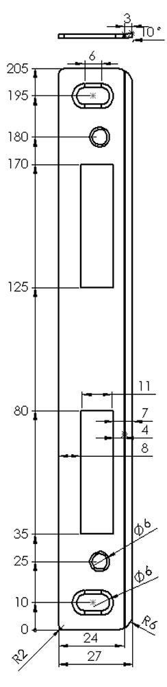| Vlastnosti | rozměry 220 x 22 x 8,5 mm, síla materiálu 1,5 mm |