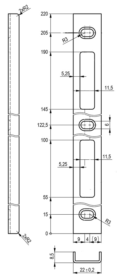 | Vlastnosti | rozměry 220 x 22 x 8,5 mm síla 1,5 mm |
