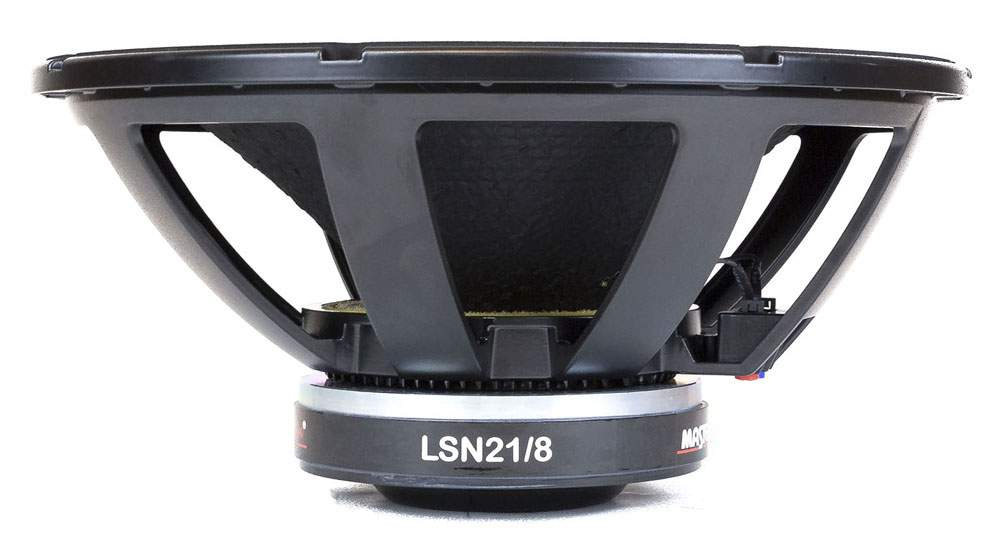 21 "profesionální Italský subwooferový reproduktor s 4,5" kmitací cívkou a výborným odvodem tepla pomocí žebrovaného chladiče.