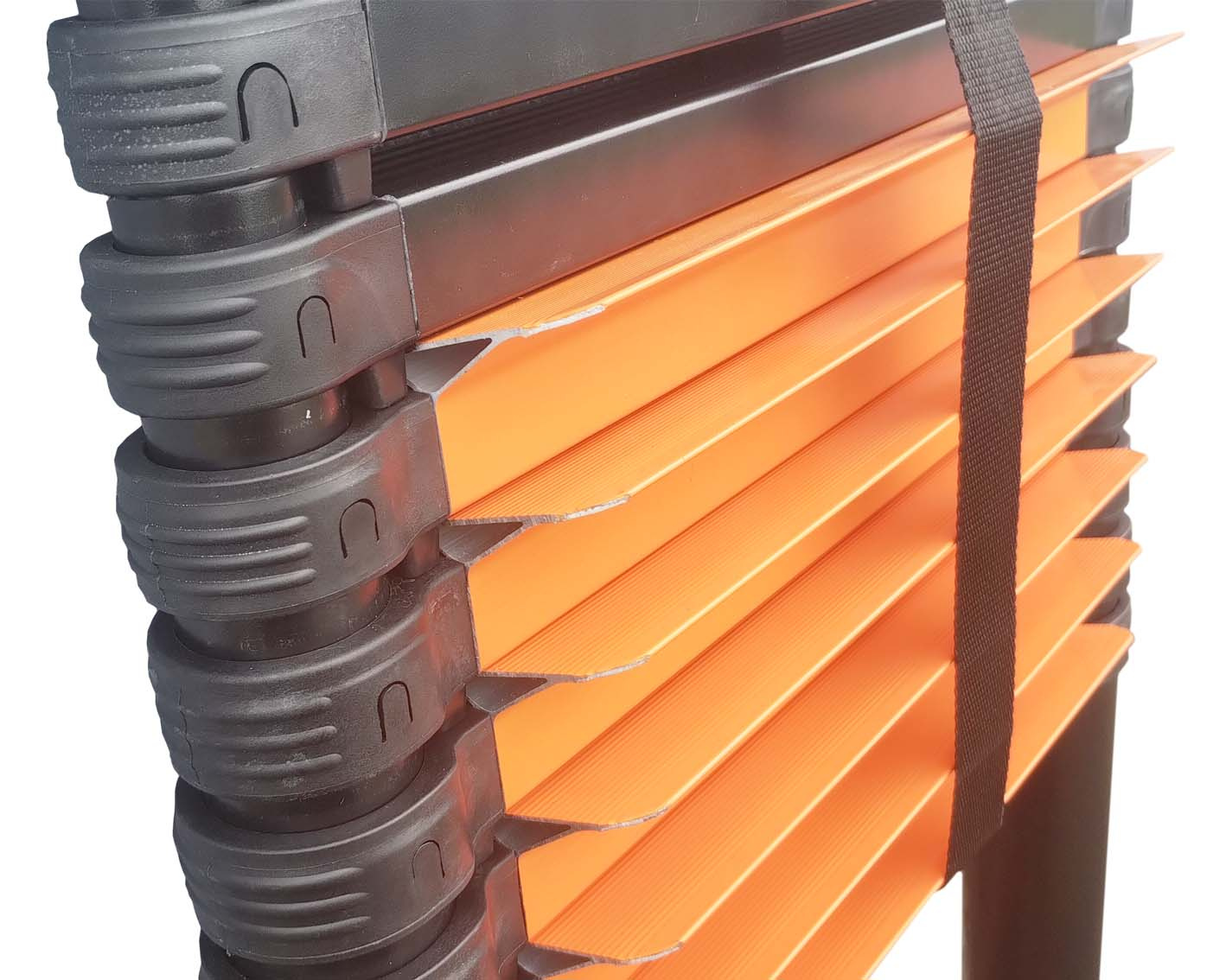 Se 7 prodlouženými stupni o rozměrech 75x337 mm z celkových 11, dosáhnete výšky až 320 cm, zatímco v složeném stavu má žebřík kompaktní rozměry 85 cm x 675 mm.