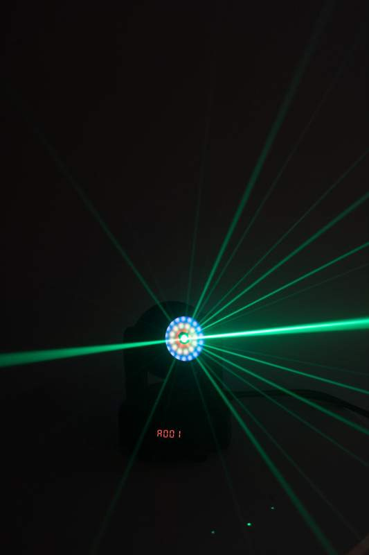 ASTRO efekt s 1x 10W RGBW Osram LED, WASH efekt s 36x 0,2W RGB SMD LED a zelený laser 50mW společně vytváří jedinečnou kombinaci intenzivních barev a precizních laserových paprsků. S možnostmi stroboskopu, stmívání a nastavením jasu RGBW LED efektu WASH můžete vytvořit atmosféru, která odpovídá vašemu individuálnímu stylu a náladě události.
