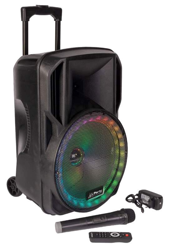 Představujeme vám 12" přenosný párty bateriový systém s LED osvětlením reproduktoru - dokonalý společník pro každou zábavu a událost. Tento systém je vybaven vestavěným 2,2Ah akumulátorem, který vám umožní užívat si hudbu bez omezení a bez nutnosti připojení k elektrické síti.