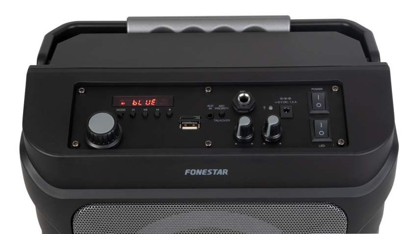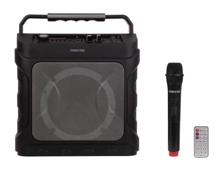 Malý přenosný PA systém určený pro mobilní aplikace. Má zabudovanou Li-ion baterii 7,4V / 1800mAh a je osazen 6,5" reproduktorem. Má vestavěný USB / microSD / MP3 přehrávač s Bluetooth připojením, možností nahrávání a FM tunerem (paměť na 35 stanic). K systému je dodáván 1x bezdrátový VHF (188,5 MHz) ruční mikrofon (napájen 2x LR6-AA bateriemi) a dálkové ovládání. Má 1x linkový vstup (jack3,5mm) a 1x vstup pro kabelový mikrofon (jack6,3mm). Kolem reproduktoru je barevný LED světelný efekt, který lze samostatně zapnout a vypnout (7 světelných efektů). Systém je vhodný pro školky, školy a různá dětská vystoupení. Má funkci karaoke i echo a je vhodný pro malé zpěváky. Na mikrofonu lze zapnout funkci priority. K systému je dodáván nabíjecí adaptér 9V DC 1,5A. na vrchní straně je výklopná rukojeť a také lze připnout popruh pro nošení na rameni (součást balení). Doba nabíjení je 3 hodiny a výdrž vestavěné baterie je přibližně 6 hodin při 50% hlasitosti.