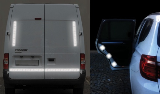 Vhodná pro zvýraznění obrysů nákladních vozidel, dodávek, vleků, dveří osobních aut apod.