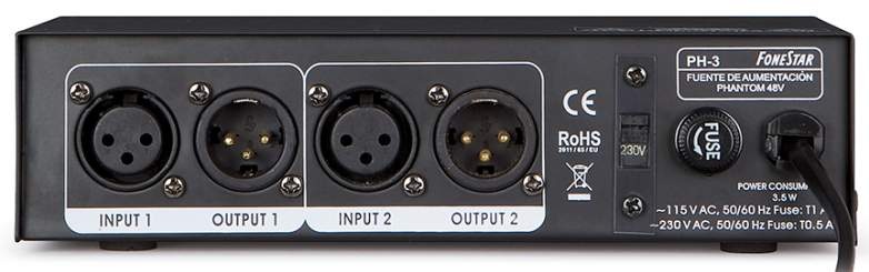 Dvoukanálový fantomový napáječ pro elektretové kondenzátorové mikrofony. 48V DC. 2x XLR vstup a 2x XLR výstup.Vnější rozměry182x46x118 mmNapájení230V ACCelková hmotnost0.8 kgSICAFONESTAR SISTEMAS, S.A, Polígono Trascueto 39600 Revilla de Camargo Cantabria, SpainNázev a adresa...