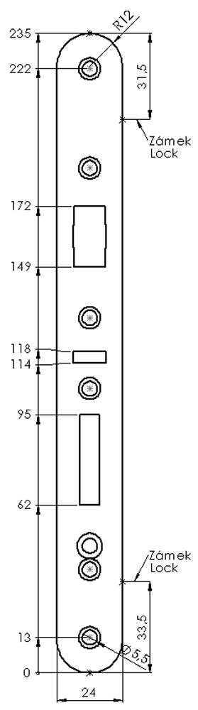 Čelo zámku určené pro zámky s roztečí 72/55.Typčelo zámkuVlastnostipro zámky s roztečí 72/55Vlastnostizakončení kulaté R9Vlastnostirozměry 230 x 18 x 3 mmProvedenínerez ...