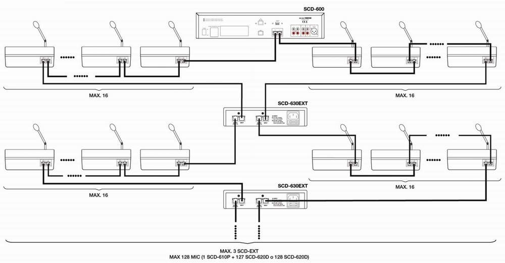 Rozšiřující modul k digitálnímu konferenčnímu systému SCD600 umožňuje připojení dalších 32 mikrofonů. Maximálně lze k systému SCD600 připojit 3 rozšiřující moduly s rozšířením až na celkově 128 mikrofonů.Vnější rozměry196x43x306 mmNapájení230/115 V ACCelková...