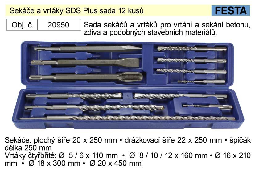 • Sekáče a vrtáky SDS Plus sada 12 kusů