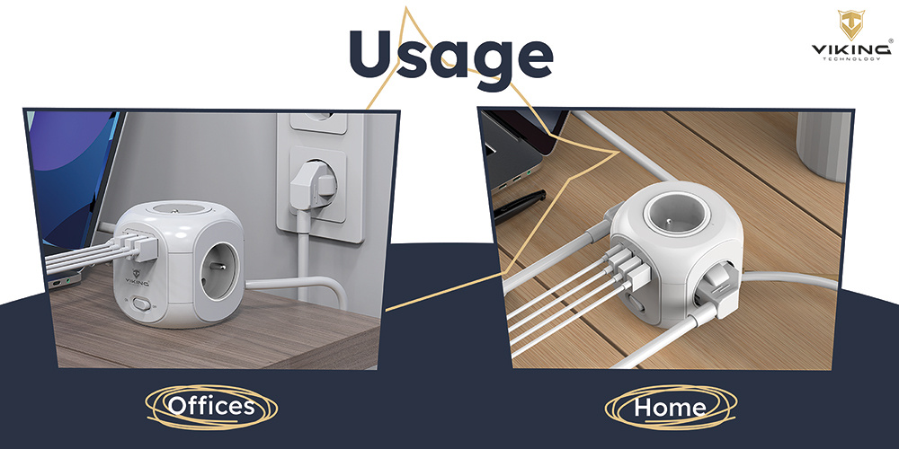Díky čtyřem AC zásuvkám, třem USB-A portům a jednomu USB-C portu umožňuje Viking AC Cube současné napájení až osmi zařízení. Už nikdy nebudete muset hledat volnou zásuvku nebo USB port.