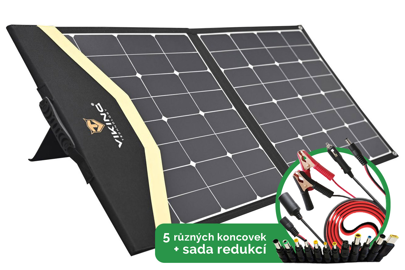 Lehký a výkonný solární nabíjecí panel pro všechna vaše elektronická zařízení. Se svými 120W(17,6V/6,82A), je ideální volbou pro nabíjení středních a velkých generátorů značky VIKING.