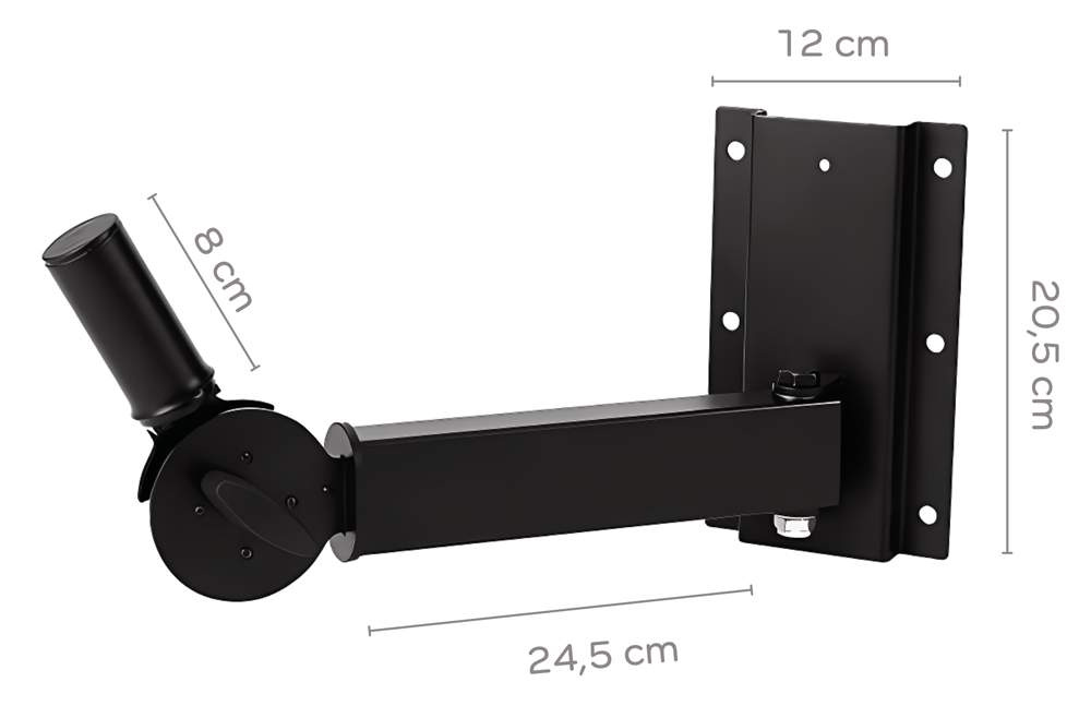 Stěnový držák reprosoustav - černý nosnost 25kg, délka ramene 24,5cm. Možnost naklopení až o 30° a natočení o 150°.Celková hmotnost1.6400 kg ...