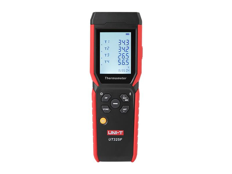 UT325F digitální kontaktní teploměr se čtyřmi vstupy který používá jako teplotní sondu termočlánek, zaručuje přesné měření teploty a široký rozsah použití, ať už v průmyslu, výzkumné a vzdělávací činnosti, nebo domácnosti. Součástí balení jsou čtyři teplotní sondy s článkem typu K,