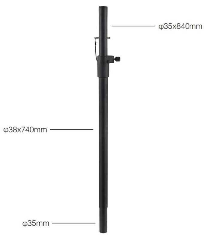 Profesionální reproduktorový stojan pro zasunutí do subwooferu s pouzdrem pro 35mm tyč. Nastavitelná délka: 74 cm - 134 cm. Maximální nosnost 50kg. Celková hmotnost1.1000 kg ...